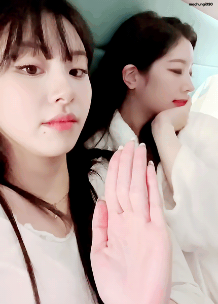 침대에서 풋풋한 모습으로 브이앱 킨 채영과 다현